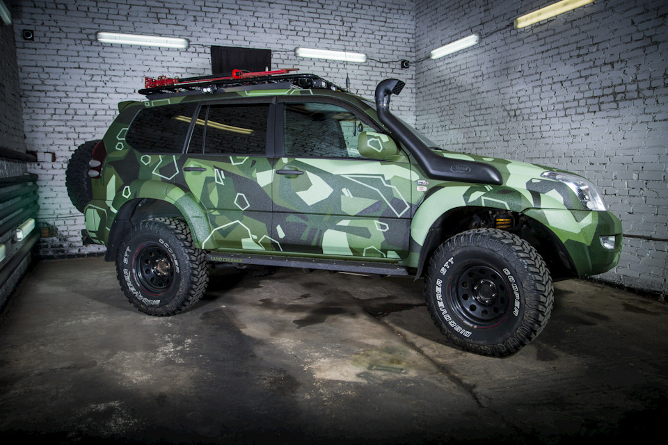Moskiewska firma Red Skull Garage, specjalizująca się w artystycznym malowaniu karoserii pojazdów, zaprezentowała ostatnio efekt swojej pracy wykonany na Land Cruiserze 120. Użyta farba zabezpieczająca jest odporna na kontakt z przyrodą oraz posiada militarny kamuflaż. Nie jest to jednak zwykły układ zielonych plam. Rosyjscy artyści postarali się, aby auto nabrało niecodziennego wyglądu poprzez złożenie wzoru z motywu nawiązującego do swojego logo...