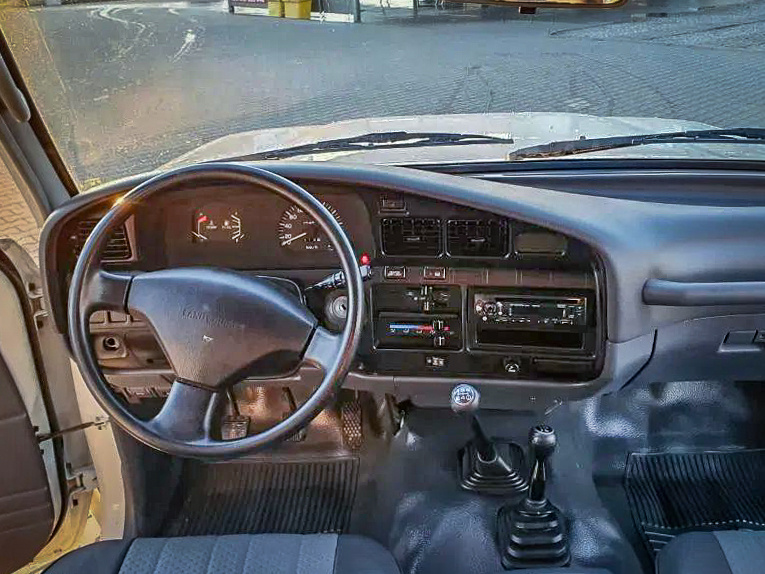 Auto jest naprawdę spartańskie. Co to oznacza - brak klimatyzacji, elektryki szyb, a nawet obrotomierza, którego miejsce zajmują wskaźnik paliwa i temperatury. Silnik bez turbiny generuje tylko 130 KM. Poza tym jazda 4x4 realizowana tu jest w najprostszy sposób - poprzez sztywne dołączanie przedniego napędu. Czy to dobrze, że nie posiada stałego napędu na wszystkie koła? Dla osoby, która potrzebuje poruszać się w terenie nie tylko na reduktorze - TAK. Trzeba pamiętać, że w 1993 roku Toyota wprowadziła wiskotyczny, centralny dyferencjał bez możliwości zblokowania w trybie szosowym. Wprawdzie takie rozwiązanie jest znakomite do poruszania sie po asfalcie, ale... w terenie nie do końca się sprawdza. Dlaczego? Jeśli nie poruszamy się z napędem zredukowanym, to tak naprawdę w terenie wystarczy zakopać sie jednym kołem i cała praca silnika pójdzie w bezsensowne kręcenie tym właśnie kołem, które straciło przyczepność... Prosty, dołączany ręcznie napęd 4x4 nie sprawdzi się na utwardzonych nawierzchniach (nie wolno go w takich warunkach załączać), ale w terenie? Będzie działał zawsze! To rozwiązanie stosowane jest przecież w Hiluxach do dziś.