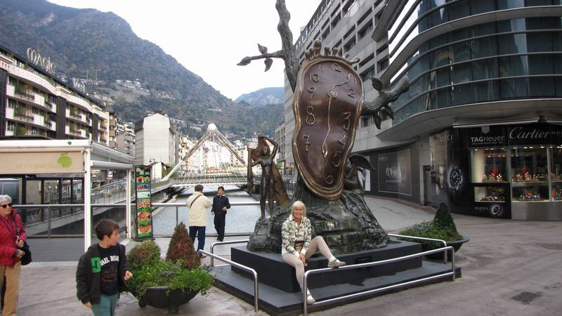 Andora la Vella (Stara Andora) to stolica i zarazem największe miasto Księstwa Andory, położone we wschodnich Pirenejach na terenie malowniczej doliny Gran Valira, na wysokości 1023 m n.p.m. No cóż, położenie wspaniałe, natomiast miasto nie robi zbyt zajmującego wrażenia… coś w stylu francuskich, nowoczesnych wysokogórskich kurortów alpejskich… wielkie eleganckie blokowisko. To taki mikro Hongkong, ogromny sklep wolnocłowy z drogimi restauracjami, salonami samochodowymi, sklepami dla motocyklistów i… skrzywionym zegarem czasu… czyżby zaznaczał powolny ruch w machinie snów?… a o czym to rozmawiają Andorczycy?… „wczoraj znowu była promocja butów”? Wybraliśmy się do jednej z restauracji na obiad, ale nie zawładnął naszymi przeżyciami smakowymi. Zamierzaliśmy zostać na nocleg w mieście, ale aura wielkiej galerii, jakoś nie przypadła nam do gustu, toteż jeszcze tego dnia, przejechaliśmy do Hiszpanii. Nocleg na campingu w Organya (10€ od os.).