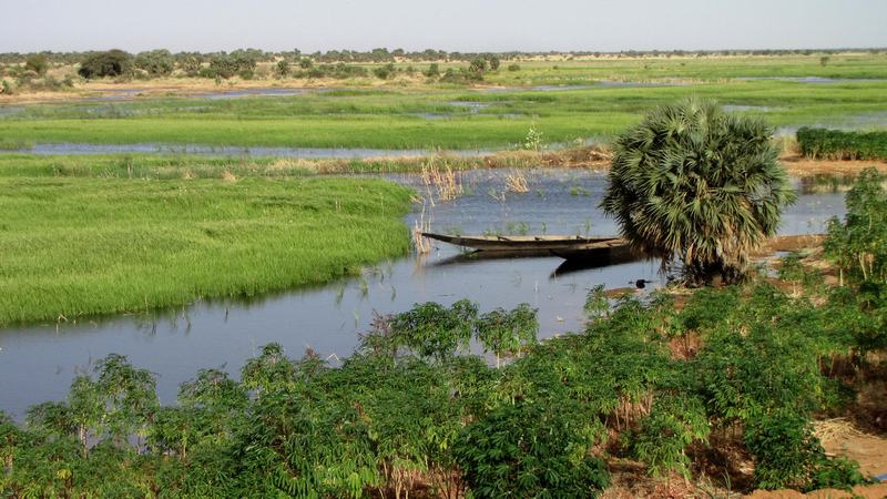 Rano jedziemy do jedynej atrakcji tego miasta „Tombeau Des Askia” (wstęp 1500 CFA od os.). Budowla w kształcie piramidy z cegły suszonej jest przypuszczalnym miejscem pochówku Muhammada I Turego (Askii), założyciela średniowiecznego afrykańskiego królestwa Songhaj. Budowla wraz z przyległym kompleksem dwóch meczetów, cmentarza i placu zgromadzeń, została w 2004r. wpisana na listę światowego dziedzictwa UNESCO. Od 2012 roku, znajduje się na liście obiektów zagrożonych ze względu na trwający konflikt w Mali. Grobowiec uchodzi za jeden z najlepszych przykładów glinianych budowli w tradycyjnym stylu budownictwa strefy Sahelu. Mierzy 17 metrów wysokości, co czyni go najwyższą przedkolonialną budowlą w regionie. W zasadzie nic szczególnego, weszliśmy na szczyt, z którego jest widok na miasto i po 15 minutach jedziemy w kierunku granicy z Nigrem. Co do miasta Gao, to coś na wzór rozległego więzienia, tyle tylko, że… nikt nie posiada wyroku,.. wszędzie są beczki z piaskiem, druty kolczaste, koncentriny, kraty, bazy wojskowe, auta szturmowe, policja i kontrole, a wszystko to sponiewierane kurzem, śmieciami i co najistotniejsze… dramatem ludzkim. Wyjeżdżamy, nowa, wspaniała droga biegnie wschodnim brzegiem rzeki na południe, urozmaicona szykanami z beczek, opon kamieni oraz kontrolami. Malownicze krajobrazy z wijącą się tonią srebrzystej wody, pomiędzy zielonymi łąkami w czerwono-brązowej scenerii pustyni. Droga pusta, patrolowana przez wojska UN. Mijamy kolejne wioski, zajeżdżamy nad brzeg Nigru.