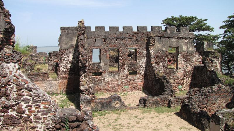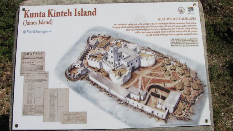 Ruiny fortu pomagają wyobraźni… w sumie budowla mała, ale jaka przepastna, przez swoje progi przepędziła dwa miliony czarnych niewolników, z których połowa, z wycieczenia tu zakończyła swój żywot, a miejscem pochówku była rzeka Gambia z docelowym miejscem przeznaczenia w paszczy krokodyla. Patrząc na to miejsce, zastanawiamy się, jaki światopogląd, jaka moralność, jaka kompania i jakie ideały… katolickimi Portugalczykami kierowały??? Wyspa kurczy się, dziś została już tylko jedna szósta dawnego obszaru, bo stale podnosi się poziom rzeki, zmywając pozostałości po największym targu niewolników w Afryce Zachodniej. Historia głosi, że kiedy w 1807 roku Brytyjczycy znieśli w Gambii niewolnictwo, na wyspie przebywało 90 niewolników. Urzędnicy obiecali im, że jeśli zdołają dopłynąć do Albreda-Jufureh, będą wolni. Żaden się nie uratował.