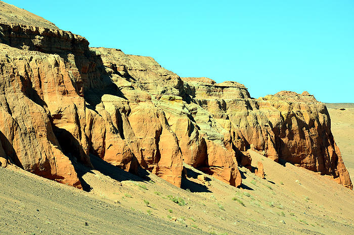 Ze wspomnianego skrzyżowania skręciliśmy na południe, do Khermen Tsav. Droga już po chwili pokazała swoje rogi. Przecinaliśmy kilka dolin wypełnionych piachem. W jednej z nich musieliśmy wdrapać się na wysoki klif po grząskim piasku. Dopiero za którymś tam razem udało się tego dokonać. Wprzódy trzeba było znaleźć najłagodniejszy podjazd.