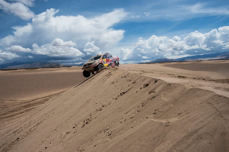 Wśród samochodów na mecie odcinka dziś pierwszy pojawił się Francuz Stephane Peterhansel, wyprzedzając swojego rodaka, Sebastiana Loeba o zaledwie 48 sekund. Dobry wynik Toyotą Hilux etap zaliczył dziś Giniel de Villiers z Republiki Południowej Afryki. Dzień zakończył na trzeciej pozycji, choć jego strata do lidera była jednak znaczna – 3 minuty i 33 sekundy. W rozmowie z motorsport.com, wspominał dzień wcześniej o problemach nawigacyjnych. Sugerował, ze błędy wynikają w głównej mierze z niedokładnej książki drogowej. Organizatorzy w tym roku poinformowali na starcie, że większy nacisk będzie położony na nawigację i Afrykaner był jednym z wielu, którzy gubili się wcześniej na trasie. Obecnie kierowca Toyoty sklasyfikowany jest na szóstej lokacie.