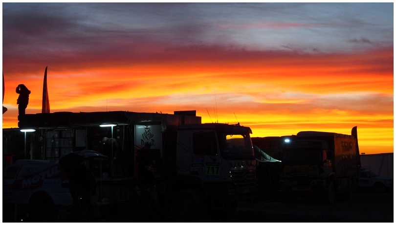 Dakar to ogromne tempo, wszyscy gnają, żeby dojechać na czas, dostarczyć części do serwisowania rajdowych pojazdów, więc nie ma czasu na zwiedzanie, choć widoki są często takie, że dech w piersiach zapiera na długo. I tu współczucie należy się mechanikom, którzy często po całonocnej pracy odsypiają i nie mają już sił na zaokienne atrakcje. Czasami tchu brakuje też i z innego powodu — trzeba wjechać na ogromne wysokości, nieraz ponad 4 tysiące m n.p.m. Brak tlenu w powietrzu nie pozostaje bez wpływu na samopoczucie. Gdy trzeba wyjść z auta, bo np. zdarzyła się awaria, każda czynność wymagająca wysiłku, np. podniesienie kabiny, nie obywa się bez zadyszki. W ciągu dnia wolnego czasu jest tylko tyle, by odrobinę odpocząć i zjeść obiad.