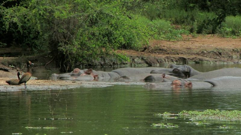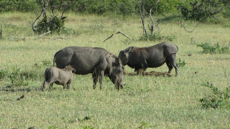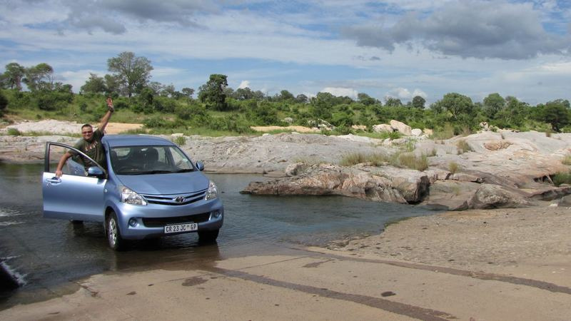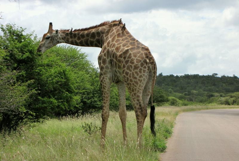 My, choć nie dysponujemy autem terenowym, przemierzyliśmy go na odcinku prawie 300 km, w większości szutrowymi drogami, w dziewiczej scenerii afrykańskiego buszu, a czasem sawanny. Każdy może w tym tak rozległym terenie znaleźć coś dla siebie, a nie każdy z odwiedzających jest wytrawnym off-roadowcem. Udało się wytropić z naszym zwyczajnym aparatem, całą plejadę afrykańskich zwierząt: lwy, nosorożce, słonie, żyrafy, zebry, antylopy, małpy, hipopotamy, guźce, żółwie, strusie i wiele przeróżnych gatunków kolorowych ptaków, których nazw nie jesteśmy w stanie wymienić. Pisząc powyżej „wytropić”, mieliśmy na myśli, to czym należy się kierować, by wiedzieć, że to jest to miejsce, czyli…jechać „okupowanym” szlakiem, zatrzymując się tam…gdzie tych kup jest najwięcej. Nie jest to nadludzki wysiłek, tylko samo wypatrywanie kup, dość nieszablonowe…a po kilku godzinach…wręcz niepokojące, ponieważ rozbieżność opinii prowokowała do wypatrywania różnic…po całym dniu staliśmy się prawdziwymi znawcami „rzeczy”. Po wyjeździe z parku południowym wyjazdem, tuż za jego rogatkami w Malelane, wynajmujemy pokój w kompleksie bungalowów za 530 rand.