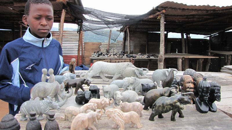 Jedziemy następne 70km drogą wzdłuż rzeki Zambezi, prowadzącą na ostatnich 30km przed Victoria Falls poprzez „Zambezi N.P.”. Tereny zupełnie nie zamieszkałe, a na drodze spotykamy zaledwie kilka aut. Wjeżdżamy do miasta i od razu udajemy się do głównego wejścia Wodospadów Victorii, które są na rzece Zambezi, na granicy Zimbabwe i Zambii. Przed przybyciem Europejczyków na te tereny, zwane były „Mosi-oa-Tunya”, co w języku lokalnego plemienia Kololo oznacza „Mgła, która grzmi”. Odkryte w 1855 r. przez szkockiego misjonarza i badacza Davida Livingstone’a, który wówczas powiedział o nich: „Widok tak piękny, że muszą się w niego wpatrywać aniołowie w locie”. Oczywiście zaliczane są do siedmiu cudów naszego globu i wpisane na listę UNESCO. Przed samym przejściem granicznym, usytuowanym przed stalowym moście, rozpostartym pomiędzy dwoma urwistymi, skalnymi brzegami Zambezi, łączącym Zambię z Zimbabwe, znajduje się parking, gdzie pozostawiamy pojazd. Jak to bywa w takich miejscach, wiele straganów oferujących miejscowe gadżety i pamiątki. Płacimy po 30$USD za wstęp i udajemy się oglądać to światowe cudo, które stworzyła natura.