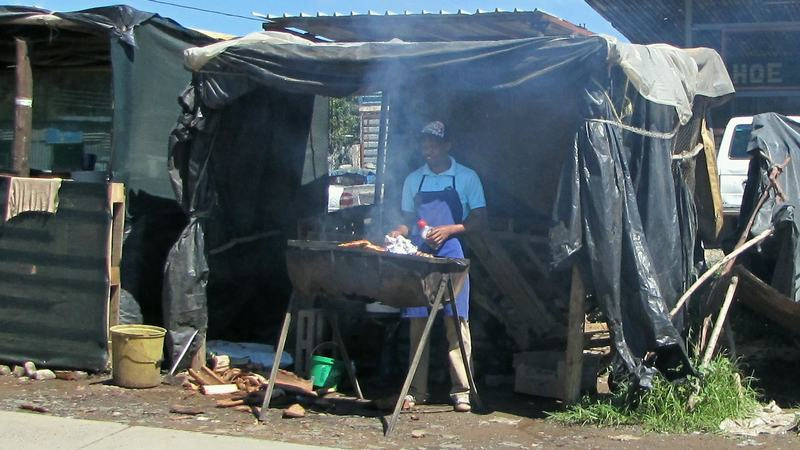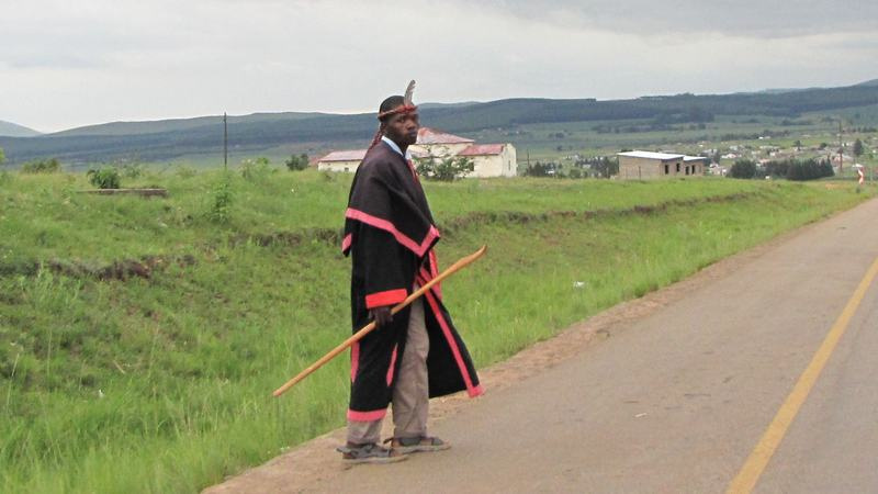 Dzisiejszy dzień przeznaczyliśmy na przejazd przez Lesotho, czyli jak to mówią „Afrykańską Szwajcarię”. Jedziemy do nieodległej granicy w Caledonspoort, po 5 minutowej odprawie i po opłaceniu 30 rand… dlaczego znów rand? Liczba pojedyncza waluty LSL- loti, maloti – liczba mnoga (w Lesotho i Swaziland waluta RPA jest równorzędnym środkiem płatniczym i kurs wymiany identyczny, lecz w RPA walutą Lesotho i Swaziland płacić nie można). Królestwo to, jest jedynym krajem na świecie położonym w całości na wysokości powyżej 1000 m. Co charakteryzuje maleńkie górskie królestwo? Poszarpane grzbiety gór, głębokie doliny, wodospady, wioski zbudowane z mułu i trawy, mnóstwo pasterzy, taksówek, kontroli policji, kucyków, warsztatów samochodowych, porzuconych wraków aut i… dramatycznie obskurnych stoisk handlowych.