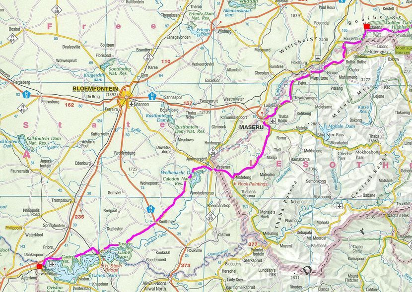 Lesotho jest silnie powiązane z RPA, jednak różnice społeczne i etniczne są znaczne, czego na każdym kroku doświadczamy. Tylko niewielka część ziemi nadaje się pod uprawę, głównie kukurydzy, sorgo, pszenicy, fasoli. Dużą rolę odgrywa hodowla, przede wszystkim kóz angorskich, dostarczających wysokogatunkowej wełny – moheru. Słabo rozwinięty przemysł, ograniczony jest do przetwórstwa spożywczego i zakładów odzieżowych. Przy drodze widać jak dużo osób zajmuje się wydobyciem, obróbką i sprzedażą kamienia. Znaczna liczba obywateli tego państwa pracuje w RPA, a ich zarobki, oprócz dochodów z turystyki, stanowią znaczącą pozycję w budżecie państwa. Gołym okiem widać że jest ono dużo gorzej zarządzane, mocno nieuporządkowane, wszędzie walają się śmieci, a na całej trasie nie spotkaliśmy ani jednego turysty, jak również białego człowieka. Stolica Maseru jest po prostu brzydka, można powiedzieć galimatias jak u cyganki w tobołku i nie spotkaliśmy na przejechanej trasie popularnych sieciówek (Shell, Spar, Mc Donald’s, KFC- jak w RPA). Nasza trasa na długości 250km przebiegała północnymi terenami, poprzez stolicę Maseru aż do ponownego wjazdu do RPA w miejscowości Wepener.