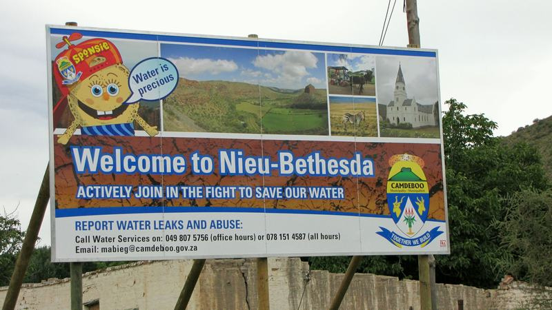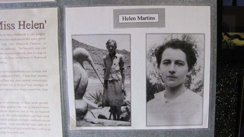 Ranek przywitał nas wspomnieniem po nocnej burzy i pięknym słońcem. Ruszamy na trasę z Gariep Dam, kontynuując jazdę drogą N9 w kierunku na południe. Po przebyciu 200km świetnej i prawie pustej drogi, na 27km przed Graaff-Reinet, zbaczamy z trasy 23km na północ, aby dotrzeć do małej wioski Nieu-Bethesda. Już na wjeździe zaskakuje nas czerwona tablica z polskim godłem przy jednym z remontowanych, kolonialnych domów, a pracownicy ubrani w czerwone uniformy… godło mają prawie wszędzie. Naszym nadrzędnym celem jest jednak odwiedzenie specyficznego domu „Owl House”(„Sowi Dom”, wstęp 50 rand od os.), gdzie pewna tajemnicza i stroniąca od ludzi artystka Helen Martins, tworzyła dziwne figury z cementu i szkła (jest ich ponad 300), a wnętrze swojego domu pomalowała w krzykliwe kolory i wykleiła tłuczonym i mielonym, kolorowym szkłem, łącznie z drzwiami i meblami. W jej myśli artystycznej dominował zdecydowanie wizerunek sowy (złowrogo spozierają zewsząd), lecz słońca, gwiazdy i księżyce znalazły swoje miejsce na sufitach, ścianach i szybach okien. Dla dodatkowego efektu, wszędzie umieściła lustra. Jedni twierdzą, że to niezwykły przykład sztuki naiwnej… inni, że to była wariatka, która nocami zdobiła swój dom, by wścibskie oczy sąsiadów nie śledziły jej… mimo wszystko osobliwych zabiegów. W 1976 r. wypijając sodę kaustyczną… odebrała sobie i życie i możliwość doczekania uznania. Sama wioska odsunięta od głównych szlaków, zachowała niepowtarzalny urok i klimat, sięgający czasów przybycia tu pierwszych osadników. Naszym zdaniem atmosfera tego miejsca jest nieschematyczna.