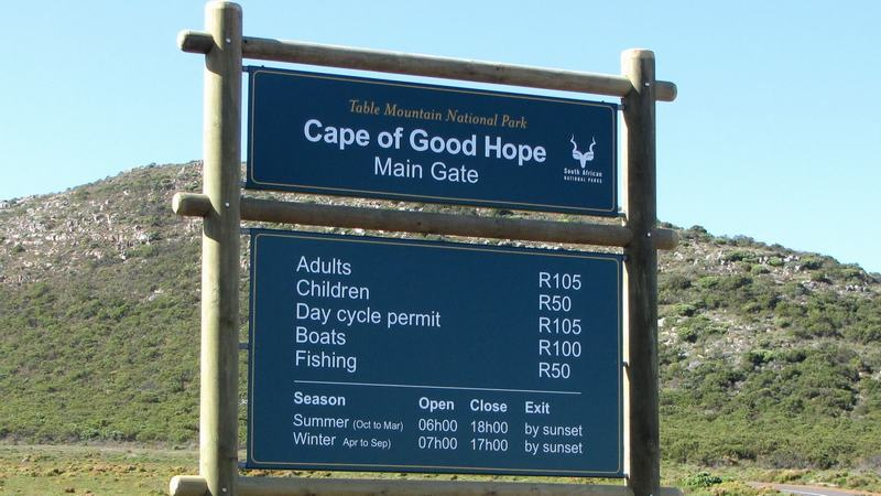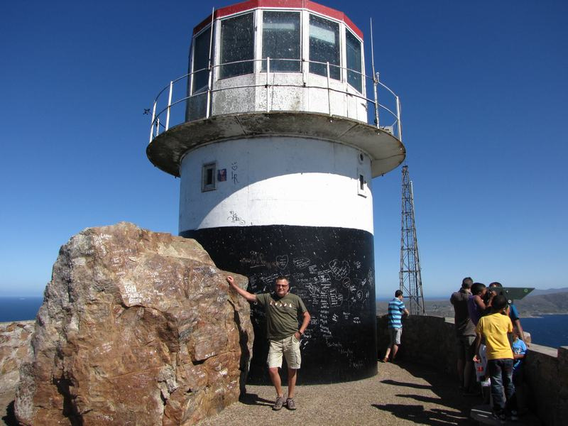 Całą noc wiatr hulał w naszym murzyńskim, krytym trzciną bungalowie. Jesteśmy dosłownie kilka kilometrów przed Przylądkiem Dobrej Nadziei, oddzielającym Atlantyk od Fałszywej Zatoki i wieje tu cały czas i to z wielką siłą. Pomimo zrywnych wiatrów, to niezła trasa do odbywania rowerowych wycieczek, bardziej dla wytrawnych i zawziętych rowerzystów z Kapsztadu. My uiszczamy po 105 rand od os. przy wjeździe na cypel i znajdujemy się na terenie Table Mountain N.P. Nierozłącznymi kompanami podróży są stada małp i całe rodziny strusi. Wspinaczkę na szczyt, gdzie ulokowana jest latarnia morska, kończy panorama niepospolitych krajobrazów, jeszcze tylko podjazd pod krzyż który to upamiętnia pierwsze przybycie do tego miejsca w 1487r Bartolomeu Diaz i opłyniecie tego przylądka przez Vasco da Gamę, w odkrywczej podróży do Indii w 1497r.