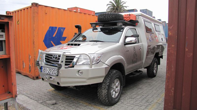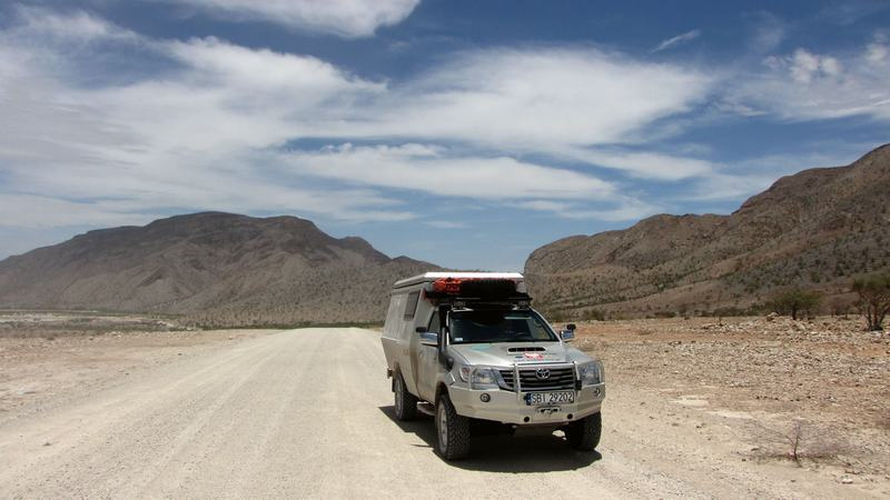 Aby to zrealizować 17 grudnia wysyłaliśmy naszą nową, stworzoną do tego celu Toyotę Hilux 4×4 z Gdyni do Kapsztadu, a nasza trasa podróży generalnie przebiegała wschodnimi terenami kontynentu afrykańskiego z RPA, aż do Keni, gdzie w jej stolicy Nairobi pozostawiliśmy nasz pojazd na przerwę w podróży, która ma trwać do jesieni. Na przestrzeni dziewięciu tygodni pokonaliśmy dystans 20600km poprzez RPA, Namibię, Botswanę, Zimbabwe, Zambię, Malawi, Tanzanię, Burundi, Ugandę i Kenię.