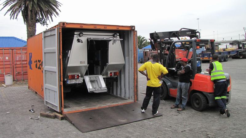 Rzeczywiście, po kilku obsuwkach czasowych, związanych z czynnościami celnymi, o 15.00 pracownik pana Shafieka, podjeżdża pod pensjonat i razem jedziemy do portu. Kontener stoi już na nabrzeżu, gotowy do otwarcia. Sprawdzenie, zerwanie plomb i drzwi otwarte, wszystko w jak najlepszym porządku. Szybkie odbezpieczenie lin, podłączenie klem do akumulatorów i nasza Toyota stoi na lądzie afrykańskim. Jeszcze zostało dopompować powietrze w kołach, gdyż zostało obniżone aby zmieścić się w prześnicie wysokości drzwi kontenera, mają one 2,28m, a nasze auto 2.30m. (było ono tak zaplanowane: 2,30m wys. x 5.80m dł. – we wnętrzu kontener ma 2.35m wys. i 5,89m dł.). Po dwóch godzinach, jestem na miejscu pod pensjonatem, żadnych dodatkowych opłat nie ponosimy z tytułu całej operacji odbioru auta, a wszystko odbyło się bardzo elegancko i bezproblemowo.