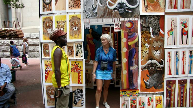 Tak więc, kiedyś brak rezerwacji nie pozwolił zwiedzić Alcatraz (nierealne w naszym trybie podróży), dziś limit osób nie dopuści do Robben (300 dziennie). Trudno, zdarza się, możemy jedynie podać cenę wycieczki -250 rand od os. (jeśli ktoś zamierza wybrać się na wyspę, radzimy zakupić bilety kilka dni wcześniej). Po porcie, przyszedł czas na zwiedzenie ścisłego, starego centrum z parkami i ogrodami. Jakby się ni obrócić…w tle zawsze Góra Stołowa, z charakterystyczną wystająca skałą na której umieszczona jest górna stacja kolejki linowej. Centrum nie jest zbyt rozległe i w dwie godziny można obejść większość atrakcji miasta. Zaczynamy od ogrodów, gmach Parlamentu, Katedra św. Jerzego(dawna diecezja laureata Nagrody Nobla, Desmonda Tutu, a potem to już tylko kolorowe jarmarki czyli pchli targ, Greenmarket.