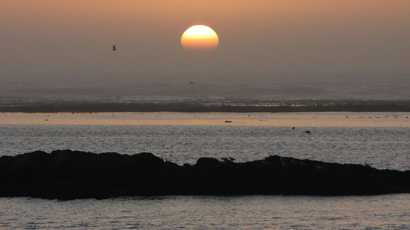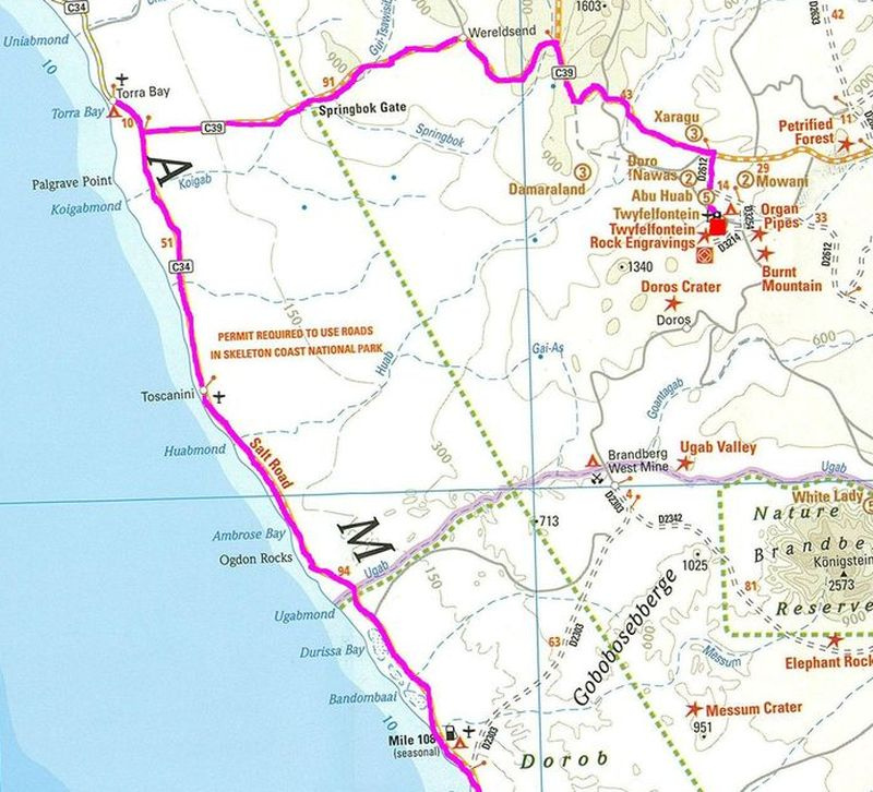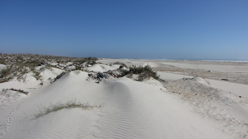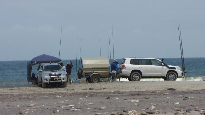 Jak to bywa w tym miejscu nad Atlantykiem, gęsta mgła, lub jak kto woli, chmura spoczywająca na ziemi wyraszająca mżawkę. Ruszamy wzdłuż wybrzeża na północ drogą nr C34 zwaną „Salt Road” („Droga Solna”), gdyż naturalnie utwardzona jest mieszanką piasku z tym minerałem. Jedzie się jak po asfalcie, podobnie jak po chilijskich salarach, np. takich jak część Atacamy. Przemierzamy rozległe tereny „Dorob National Park”. Miejsce to szczególnie upodobali sobie wędkarze, którzy zaopatrzeni w długie wędziska okupują nadatlantyckie zimne wybrzeże, bardzo zasobne w ryby (kiedy jadą, ich auta przypominają ogromne langusty na kółkach).