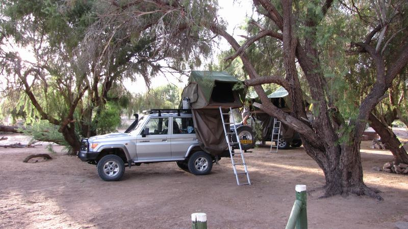 Wieczór w blasku zachodzącego słońca, który miękko przechodzi w blask księżyca, spędzamy w atmosferze podróżników goszczących na campie, wymieniamy się informacjami, spostrzeżeniami i projektem do przodu. Oczywiście całości dopełniają kulinaria, znany już traumatosenny namibijski stek z grillowanymi warzywami, wino made in RPA (pomimo iż jechaliśmy poprzez namibijskie winnice, ich wyroby nie są dostępne w sklepach… podejrzewamy, że właścicielami plantacji są Afrykanerzy z RPA, a wina dostępne w Namibii są importowane wyłącznie z tego kraju).