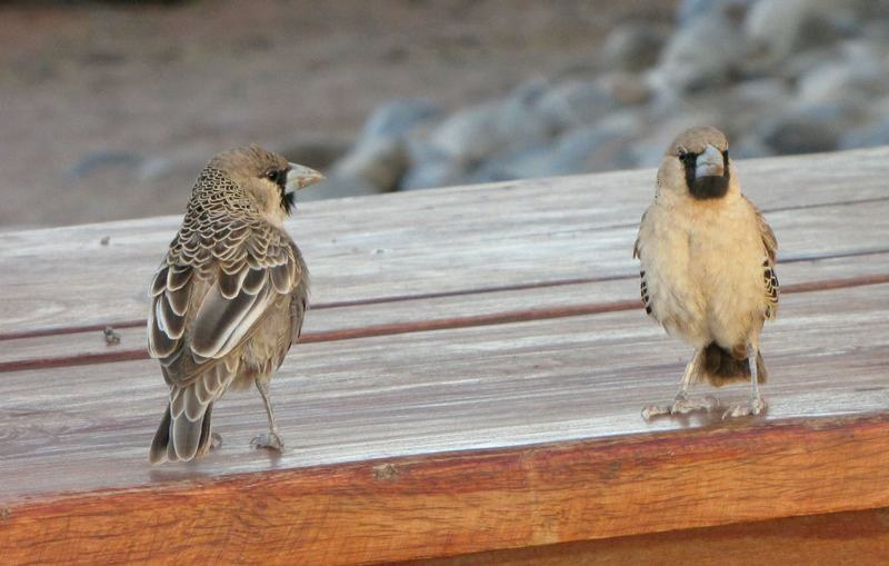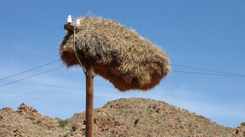 Na wjeździe do parku, w turystycznej osadzie Sesriem, wynajmujemy stanowisko kempingowe za 280N$ i dodatkowo płacimy 170N$ za permit upoważniający na 24-godzinny pobyt, czyli wstęp na jego obszar. Jeszcze tego dnia zwiedzamy Sesriem Canyon i wydmy położone na skraju parku- Elim. Atmosfera tego miejsca jest niepowtarzalna i nie do opisania. A tak w ogóle, trudno coś opisywać słowami, które wybrzmią jak banał, gdyby chcieć opisać 400km dzisiejszego przejazdu. Nowość dzisiejszego dnia, niezwykłe gniazda małych, sympatycznych ptaszków, nieco przypominających nasze wróbelki, architektów wielorodzinnych gniazd, projektowanych ze ździebeł traw i trzcin, umieszczanych na drzewach i słupach… powala pracowitością i sprytem, czasem przypominają dachy murzyńskich chałup, tylko jakby chałupy brak.
