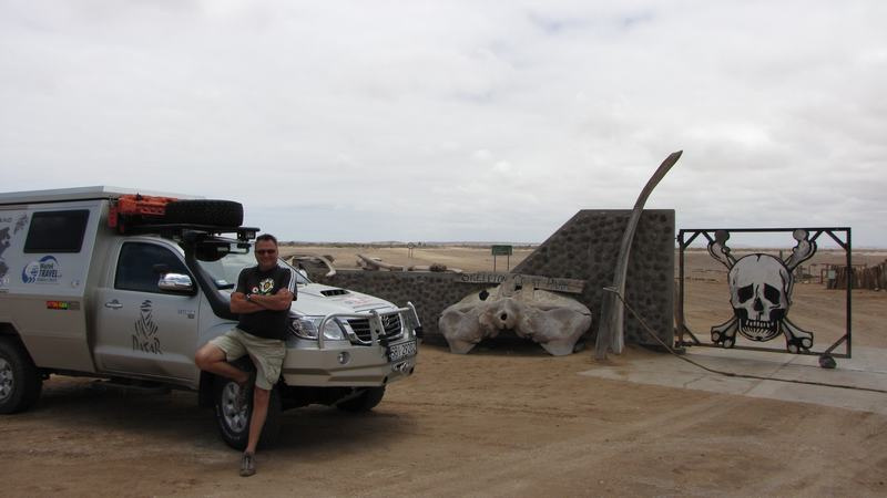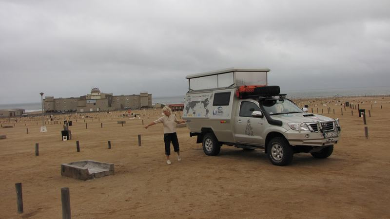 Wytrawni off-roadowcy z zachwytu, mieliby uśmiech dookoła głowy… my niekoniecznie. Jedynie na niewielkim fragmencie, po wjeździe do Namib Naukluft Park, nasza panoramiczna czujność, przywróciła wysokie emocje. m bliżej zimnego oceanu, tym chłodniej, mgliście i ponuro. Miasto i zarazem największy port Namibii, typowe brzydactwo portowe i do spenetrowania pojazdem w pół godziny. Uzupełniamy zapasy w super zaopatrzonym sklepie „Spar”, i jedziemy jeszcze wzdłuż Atlantyku następne 35km drogą B2, do największego kurortu Namibii Swakopmund i tuż za miastem na ogromnym campie zwanym „Mile-4” Caravan Park(„4mila”), przystosowanym na 300 stanowisk, jako czwarta załoga zostajemy na nocleg.