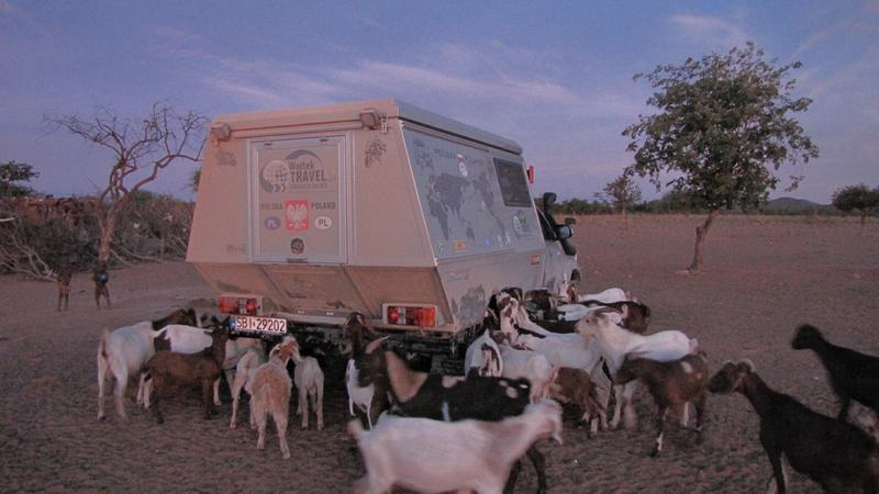 Nasz tłumacz śpi w jednym z prymitywnych domków, a my… oj… przecież nie prosiliśmy nikogo o umycie Toyoty… i to tylko do połowy… to kozy wylizały auto z soli, przyklejonej jeszcze w czasie przejazdu przez Salt Road… najbardziej smakowały im nadkola. Z nadmiaru wrażeń nie możemy zasnąć, no cóż… było się tak nie emocjonować.