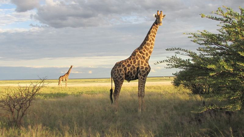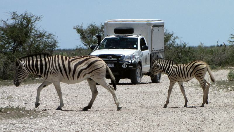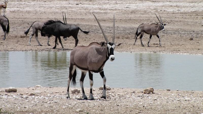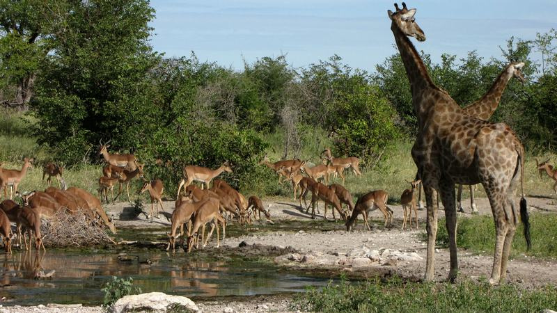 Park Narodowy Etoszy zajmuje powierzchnię 22270 km² i jest jednym z największych parków narodowych na świecie. Został ustanowiony jako rezerwat zwierzyny przez niemieckiego gubernatora von Lindenquista w 1907 roku. W czasach apartheidu, w 1967, został zmniejszony do mniej niż połowy. Głównym elementem parku jest Etosha Pan (miejsce suchej wody) – rozległa, pozbawiona roślinności, płaska depresja będąca swoistym domem dla wielkich zwierząt. Występują tu 144 gatunki ssaków, takich jak słoń, żyrafa (ich populacja wynosi ok. 1500 osobników), oraz nosorożec czarny. Wśród drapieżników spotkać można lwa, geparda i lamparta. Przedstawicielami antylop są antylopa eland, mała antylopa dik-dik oraz antylopa gemsbok (oryx), której wizerunek widnieje na emblemacie namibijskiej armii. Obficie występuje tu również ptactwo – ok. 340 gatunków, 110 gatunków gadów, 16 płazów i 1 gatunek ryby… zadowalająca turystę statystyka.