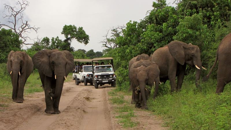 Tuż przed wyjazdem z parku, napotykamy na specjalne pojazdy jadące od strony Kasane, które wiozą turystów na tzw. safari po parku. Aby podglądnąć tę wersję zwiedzania, podpięliśmy się do grupy… koszmar, tablety, iPhony i te wysoce profesjonalne stroje safari… coś jak Krupówki w sezonie i rewia mody narciarskiej.