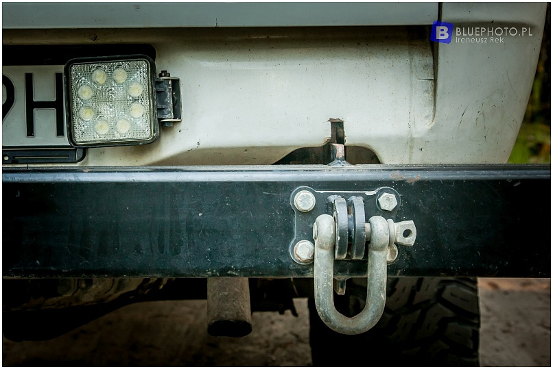 Przy poruszaniu się w bardziej wymagającym terenie to podstawowe wyposażenie auta, więc i tutaj nie mogło jej zabraknąć. Zamontowano ją w najniższym możliwym punkcie. Daje to pozytywne efekty przy wyciąganiu się z kłopotów. Solidna płyta od wyciągarki jest od razu elementem ochronnym ważnych podzespołów auta.