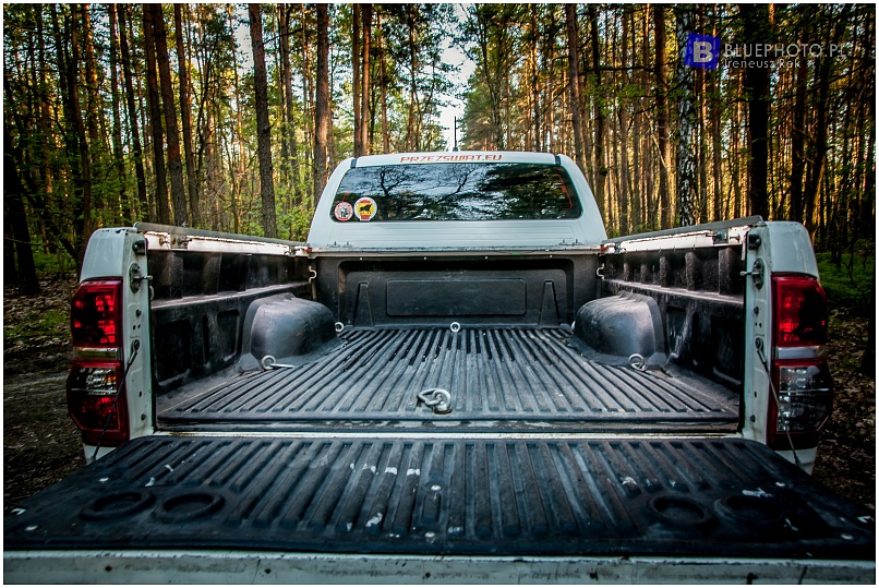 Dodatkowe lampy typu LED, umocowane do poszycia zderzaka, sprawdzają się znakomicie do doświetlania pokonywanych przeszkód. Nie są to światła dalekosiężne, do oświetlania terenu służy listwa LEDowa, zgrabnie umieszczona na dachu auta. Ciekawym rozwiązaniem zastosowanym w tym samochodzie jest też podświetlenie skrzyni ładunkowej. Aby w terenowych i biwakowych okolicznościach łatwo było penetrować jej zawartość, pod krawędzią paki dodane są również LEDowe listwy.