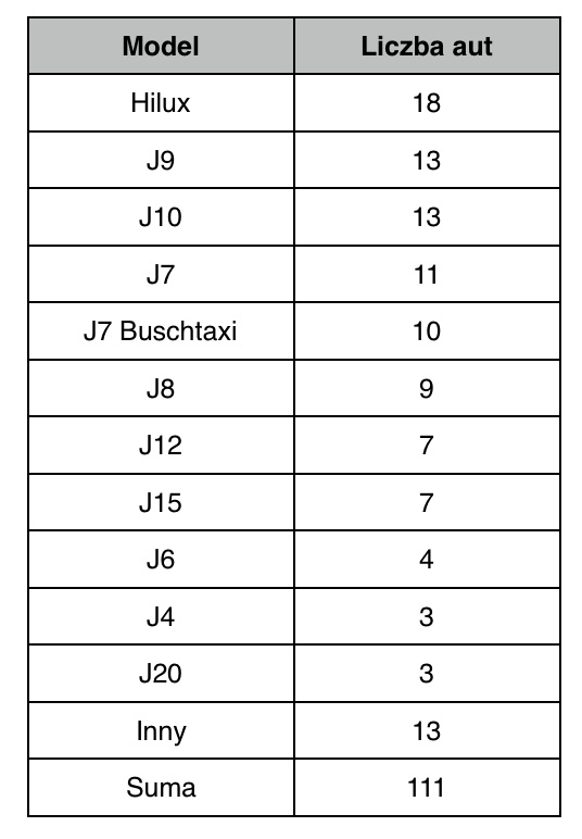 Liczba samochodów testowych: 5