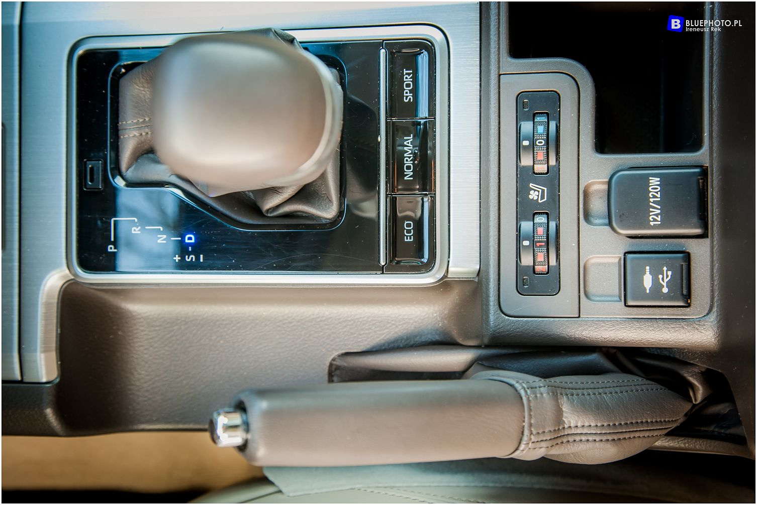 Na środkowej konsoli uwagę zwracają dwa pokrętła. Jedno od sterowania systemem Crawl Control  i MTS oraz niższe do załączania napędu zredukowanego. Ich wygląd to kolejne nawiązanie do Land Cruisera 200 (choć tam znajdują się w innym miejscu). Nowością w obecnej wersji 150-ki jest fakt, że oba systemy inaczej niż dotychczas współpracują ze sobą i działają równolegle.