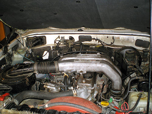 Czterolitrowy, sześciocylindrowy diesel, jest ostatnim z serii H. Silników, które były montowane do 1972 do modeli J4, a potem J5. Ten ostatni z serii, sygnowany symbolem 12HT, był już zaopatrzony w turbosprężarkę i podkręcony do 136 koni mechanicznych. Produkowano go od września 1985 do stycznia 1990. Nie konie mechaniczne są najważniejsze, o tym napiszę później, ale maksymalny moment obrotowy i wykres jego narastania podczas wzrostu obrotów silnika, w tym wypadku maksymalny moment wynosi 315 Nm przy obrotach 1800. To świadczy o tym, że silnik ten jest niskoobrotowy, a te dwa tysiące kilometrów, jakie nim dotąd przejechałem dały mi pewne doświadczenie o tym, jakie obroty tego silnika są najbardziej użyteczne w normalnej jeździe. Bardzo rzadko wykraczałem ponad 2000 obrotów na minutę, przy tych, na piątym biegu można jechać już 95 km/h, to mi wystarcza. Niskie obroty, duży nadmiar mocy i lekka noga kierowcy sprawiają, że spalanie paliwa jest nawet mniejsze niż w mojej poprzedniej Toyocie z silnikiem 2LT (2.4 TD). Turbina jest idealnie dostrojona, nabiera odpowiednich obrotów w odpowiednim momencie, gdzieś koło 1700 obrotów silnika i dopiero przy 2300 daje znać, że ten silnik nie lubi wysokiego kręcenia. To wada, jeśli chcemy wykorzystywać ten silnik, lub cały samochód do ostrzejszej zabawy w terenie, gdzie czasami trzeba przydepnąć aby przejść rozpędem, albo oczyścić opony z błota. Poza tym jest żeliwny, a przez to ciągnie w dół przód samochodu.
