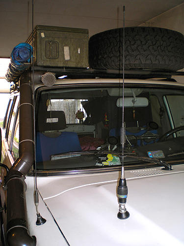 Do wyposażenia wnętrza dołączyło CB radio z krótką anteną ale najlepszej firmy, zamontowaną na masce, około 20cm od prawego brzegu.