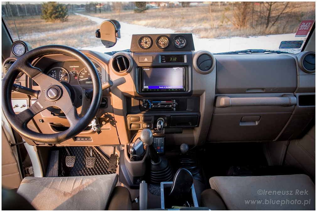 Z ciekawostek - ten Land Cruiser posiada dwa sygnały dźwiękowe, w tym jeden pneumatyczny, co się często przydaje w rejonach, gdzie po drogach chodzi sporo zwierzyny.