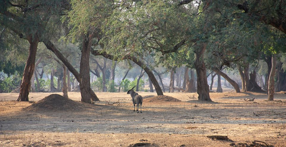 Z samego rana wypoczęci z apetytem na kolejny dzień wrażeń ruszyliśmy do Mana Pools – Parku Narodowego w Zimbabwe, położonego nad niezwykle urokliwą rzeką Zambezi. Mana w języku Shona znaczy cztery, zatem Mana Pools to cztery baseny. Ich obecny kształt jest wynikiem zmieniającego się na przestrzeni milionów lat i na nowo ukształtowanego koryta rzeki. Wraz z nastaniem pory suchej, kiedy wysychają okoliczne sawanny na obszarze Mana Pools wciąż utrzymuje się wilgoć, do rezerwatu przybywają ogromne stada zwierząt z terenów całego północnego Zimbabwe, głównie słoni i bawołów ale również kilku rzadko spotykanych w innych częściach kraju, grup antylop jak eland i kobuz. Podczas pory deszczowej tereny parku zamieniają się w szeroki pas jezior, dlatego żyje tu największa w całym Zimbabwe populacja hipopotamów i krokodyli. Mana Pools oprócz wspaniałych zwierząt to imponujący las buszowy, urzekający różnorodnością gatunków drzew jak akacjowce, mopani, rodezyjskie teaki, jackelberry, hebanowce, mahonie, baobaby czy figowce o niespotykanych nigdzie indziej rozmiarach. Nie dziwi zatem fakt, że Park Narodowy Mana Pools wpisano w 1984 r na listę światowego dziedzictwa UNESCO. Stanowi on ostoję dla wielu zagrożonych wyginięciem gatunków dzikich zwierząt. Ochroną objęte jest około 2500 km2 obszaru równiny zalewowej rzeki Zambezi.