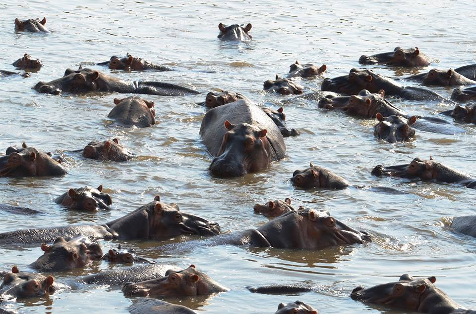 Tymczasem kolejne widowisko przed nami nad rzeką Luangwe, gdzie w Hippo Pool naliczyliśmy blisko 100 opasłych osobników hipopotamów w bliskim sąsiedztwie krokodyli nilowych. W pewnym momencie z wody po przegranej walce o dominację wyszedł samiec hipopotama, wyczerpany i sflustrowany utratą samicy i terytorium . Woleliśmy zejść z drogi niż być łakomym celem na pocieszenie.