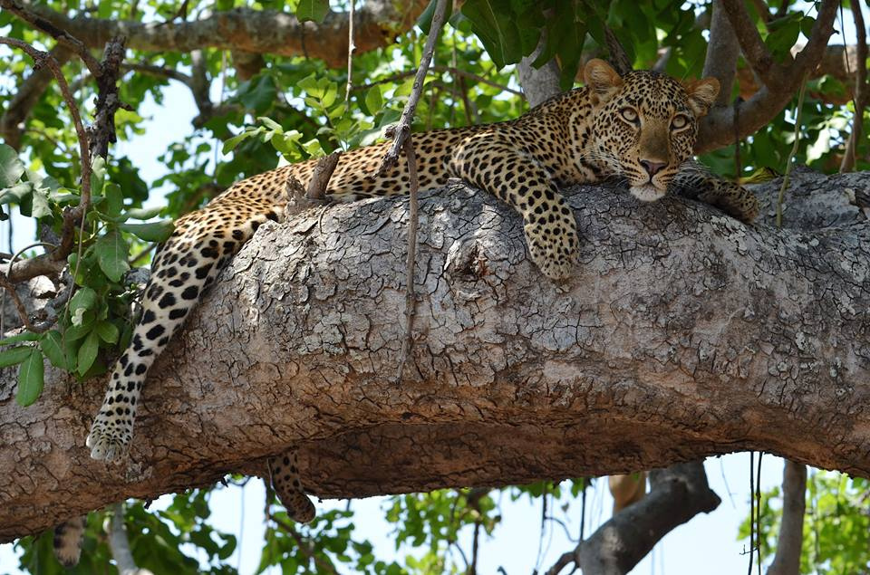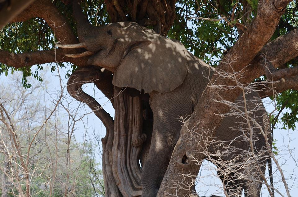 Po tej przygodzie do przyrodniczego raju za jaki uznaje się Park South Luangwa dotarliśmy wieczorem. Kolejny dzień zapowiadał się wspaniale, od bladego świtu po ciemną noc obcowanie z naturą w najczystszej postaci, na wyciągniecie ręki - walking &drive safari. Rankiem podzielono nas na dwie 4 osobowe grupy, z przewodnikiem i strażnikiem wyposażonym w broń palną. Każda z grup przeżyła coś fascynującego i absolutnie nieprzewidywalnego. Czy widziałeś słonia na drzewie? Nieee? No pewnie, że nie! bo słonie nie chodzą po drzewach…a my widzieliśmy pewnego grubego łakomczucha, który wdrapał się po termitierze na pień i zajadał pachnące i chrupkie liście drzewa Jackel Berry. Innym razem jadąc autem, nagle zatrzymaliśmy się i zadzierając głowy wysoko do góry, ujrzeliśmy leniwie wyciągniętego na gałęzi okazałego lamparta. Na naszych nosach niemal poczuliśmy aksamit lamparciego ogona, patrzył głęboko w nasze oczy a my ogłuszeni biciem naszych serc, trwaliśmy w tej chwili, która zdawała się być wiecznością. To było coś, przebiliśmy piątkę z jednym z wielkiej piatki