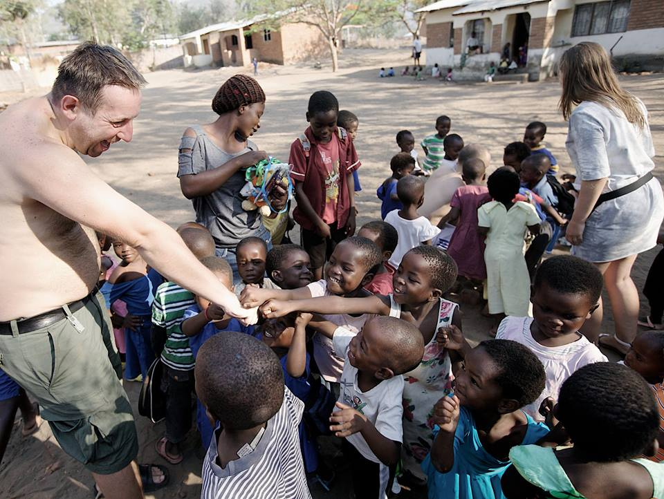 Nad ranem ruszyliśmy w stronę Parku Narodowego Lake Malawi. Po drodze udało nam się odwiedzić malawijskie przedszkole pełne uradowanych naszym widokiem maluchów. Za każdym razem wyjeżdżając z Polski, planujemy spotkanie z dziećmi, bo dają przede wszystkim nam ogromną dawkę radości i niezłą lekcję pokory. Na szczęście nasze polskie dzieciaki chętnie dzielą się swoimi zabawkowymi zasobami. Nic nie cieszy bardziej od szczerego uśmiechu obdarowanego brzdąca, były piątki, żółwiki i obowiązkowe przytulasy. Naładowani pozytywną energią, uzbrojeni w świetne humory dojechaliśmy do Cape McClear. Na plaży czekało nas wesołe powitanie w akompaniamencie muzyki lokalnego bandu. Kilku młodzieniaszków wyraźnie ożywiało okolicę, wystukując rytmy o zbiorniki po oleju czy wodzie. Byli uroczy i grali znakomicie!