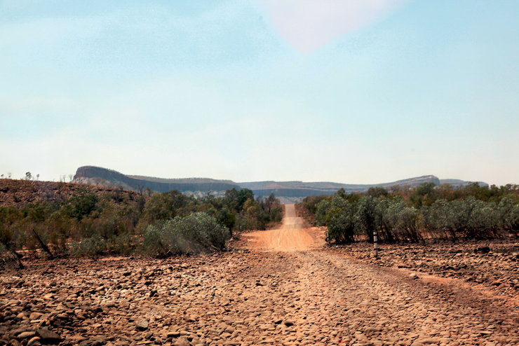 Mniej więcej w połowie Gibb River Road auto zaczęło wydawać niepokojące dźwięki z tylnego mostu. Odpinamy wał, jazda próbna wypada pomyślnie, więc jedziemy przednionapędówką. Wszystko jest OK do wjazdu w teren. Tak docieramy do Kunanara. To małe miasteczko we wschodniej części Kimberley, gdzie część mieszkańców żyje z uprawy owoców i warzyw, pozostała z naprawiania i mycia aut lub karmienia turystów przyjeżdżających z Gibb River Road. Znajdujemy warsztat, mechanicy zaczynają wymieniać most.