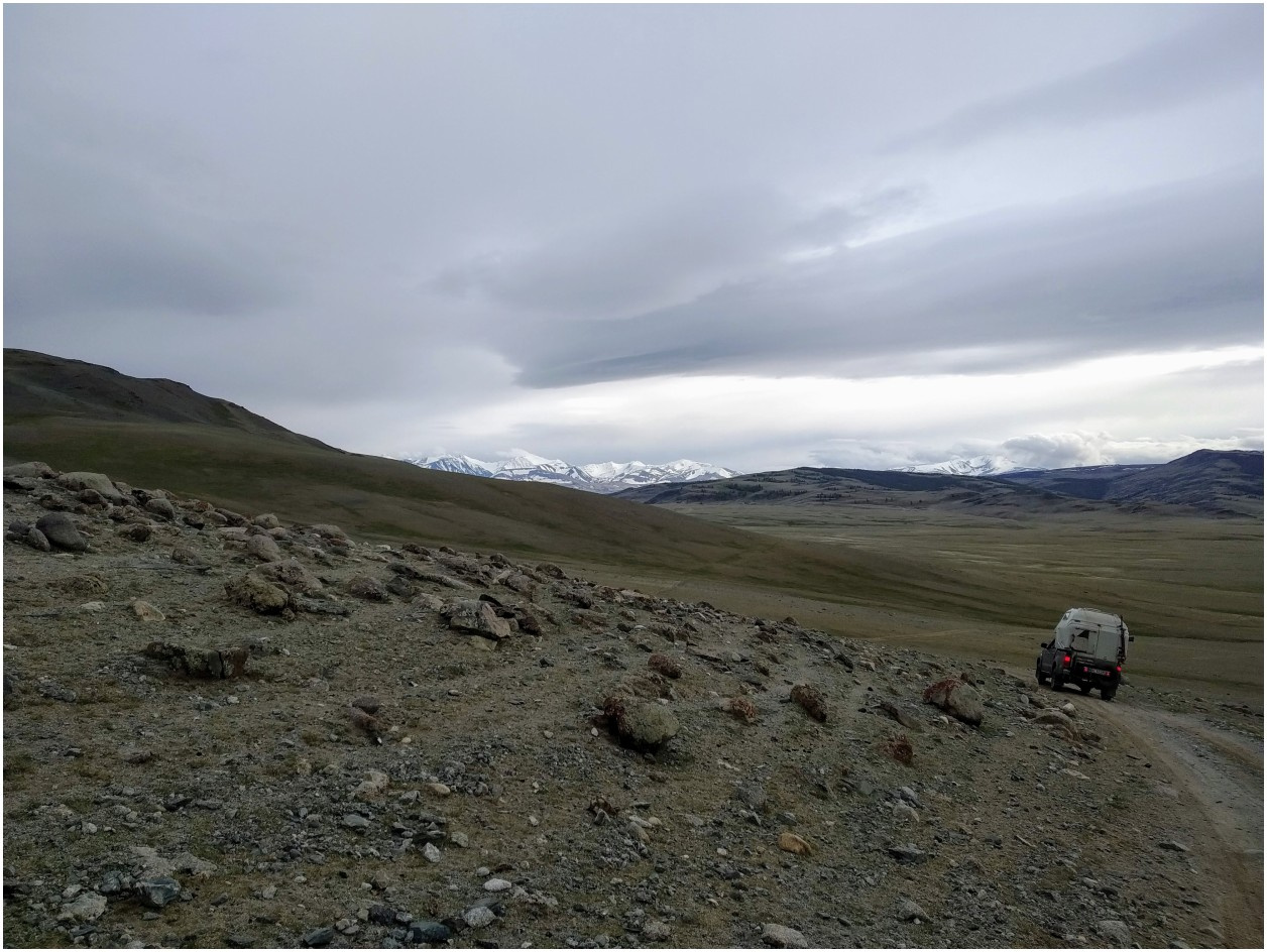 W końcu docieramy do przejścia granicznego z Mongolią – Tashanta. Tu kończy się droga, jaką znamy z europejskich realiów. Wjeżdżamy w Kraj Ałtaju i prędkość podróżna miejscami spada do 10-20km/h. W ciągu całego dnia pokonaliśmy 170km. Po przejeździe przez „most” (link) rozbijamy obóz. Cudem unikamy aresztowania, bo okazuje się, że wkroczyliśmy w strefę nadgraniczną. Po przekazaniu skromnych upominków, pozostajemy wciąż na wolności...
