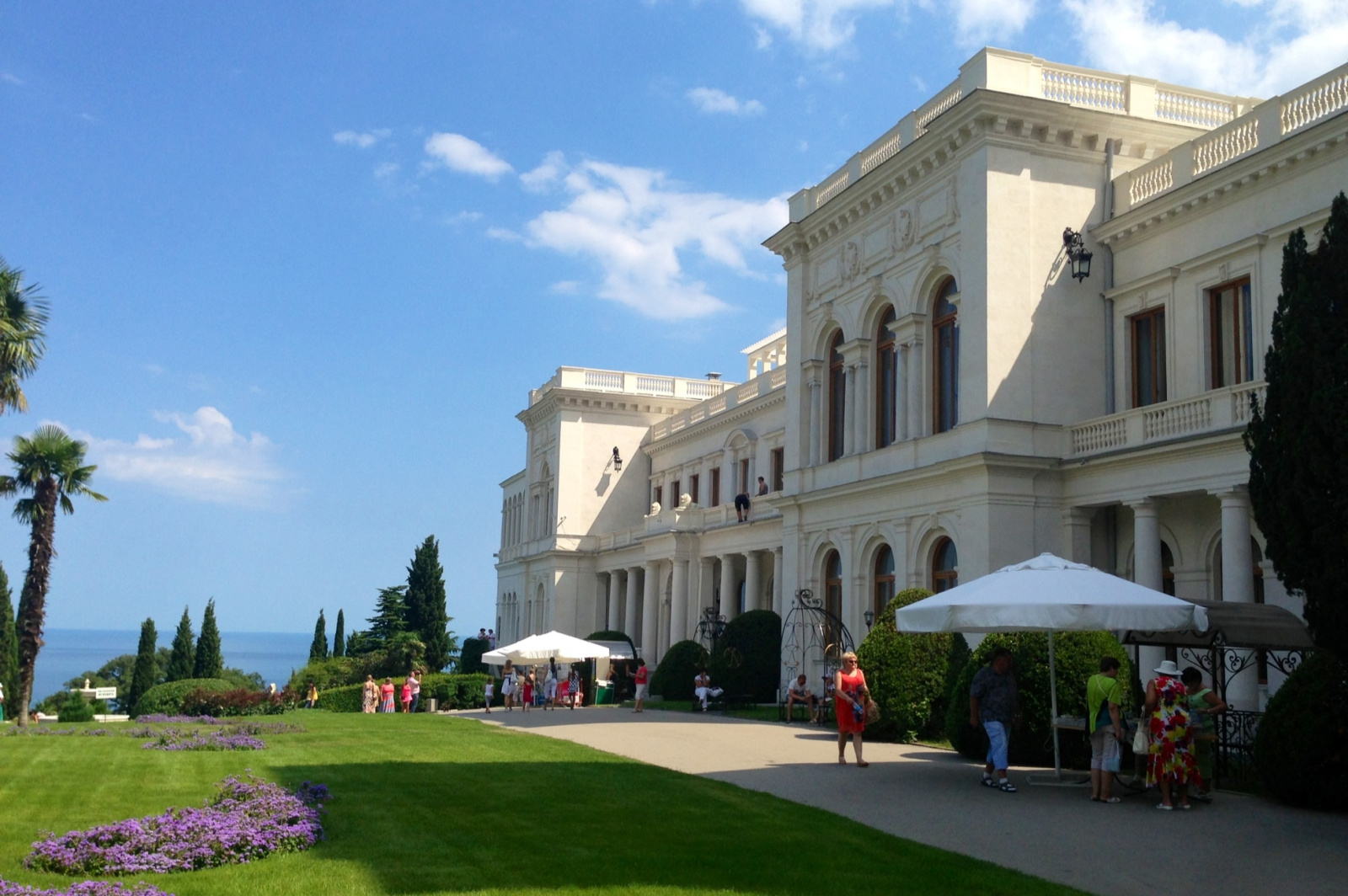 Dziś lekcji historii ciąg dalszy. Zaczęliśmy od Pałacu Woroncewa w Ałupce. Najbardziej atrakcyjny pałac Riwiery Krymskiej, wybudowany w I połowie XIX stulecia w 3 stylach: Gotyku, Baroku i Mauretańskim. Słynie jako prawdziwa perła regionu Wielkiej Jałty. Wokół pałacu leży piękny park z I połowy XIX w. Na powierzchni 40 ha rośnie 200 gatunków drzew i krzewów. Na szczęście można zwiedzić cały obiekt z pozycji wózka golfowego.