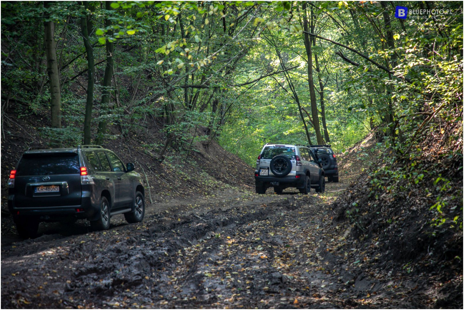 Niedzielny poranek 25 września był wyjątkowo pogodny, szczególnie po trwającej przez wcześniejsze dni jesiennej aurze. Punktualnie o 9.00 w miejscu zbiórki stawiło się 8 załóg - w 5 land cruiserach i 3 hiluxach. Po obowiązkowej kawce i krótkiej odprawie kolumna wyruszyła z Legionowa w kierunku zapory w Dębe. Z asfaltu zjechaliśmy w Starym Orzechowie, by pokręcić się po terenach na rzeką Narew. To popularne wśród wędkarzy i nie tylko miejsce. Piękne widoki, słoneczna pogoda - to idealne warunki na pamiątkowe zdjęcie grupowe. Tak też zrobiliśmy.