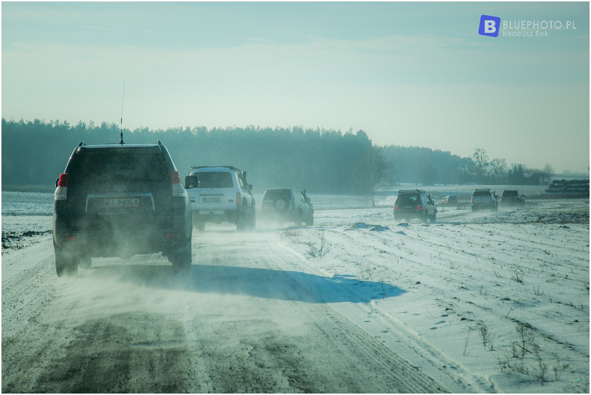 Na zaproszenie umieszczone na stronie www.landcruiser.pl odpowiedziało kilkanaście załóg. Miejsce zbiórki - Toyota Marki, sobota godzina 10.00. Aura znakomita, słoneczna pogoda, temperatura -12 st.C., ale przy takiej "lampie za oknami" lekki mrozik to tylko przyjemność. Michał Horodeński, który szefuje klubowi, wprowadził wszystkich w harmonogram dnia: wspólna jazda po ośnieżonych traktach ziemi zakroczymskiej, obiad w terenie, nawigacja wg roadbooka po Kampinosie, a na koniec wspólna kolacja w dawnym dworze.