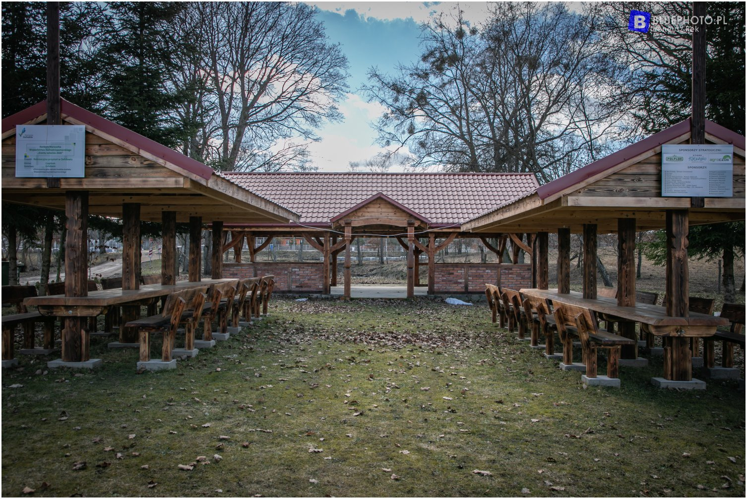 Start realizujemy z Siemczyna. Tą bardzo ciekawą historycznie miejscowość wraz z pałacem penetrowaliśmy i opisaliśmy w poprzedniej części wyprawy, wiec już bez zbędnej zwłoki ruszamy w teren. Drogi, którymi się poruszamy, pomimo, że gruntowe i jeżdżone przez leśników prowadzących wycinkę są raczej łatwe dla Highlandera. Jedyny problem stanowią miejsca obficie zarośnięte. Tu daje we znaki spora szerokość auta (193cm) i nasza obawa o stan jego lakieru. Mimo wszystko bez strat docieramy do miejscowości Nowe Kaleńsko gdzie czeka ciekawe miejsce – ogromna wiata przygotowana dla turystów poszukującego miejsca na odpoczynek i ognisko.