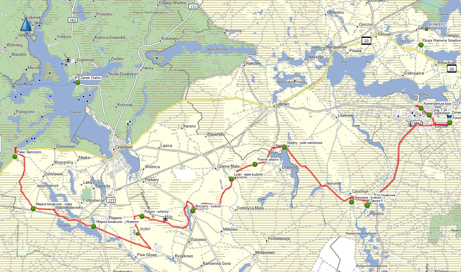 Drogami wśród rozległych pól i lasów dotrzemy do byłego lotniska wojskowego Czaplinek-Broczyno. Wybudowano je w latach 50. XX wieku jako awaryjne lądowisko dla 6 Pułku Lotnictwa Myśliwsko-Szturmowego z Piły. 31 grudnia 1998 roku pułk został jednak rozformowany i od tego czasu obiekt niszczał. W 2009r wróciły tu samoloty, gdyż lądowiskiem zajęło się Stowarzyszenie Lotnicze w Czaplinku. Na byłych obiektach wojskowych spotkać można także miłośników motorsportu. To tutaj odbywają się odcinki specjalne rajdu Baja Poland. Na starych drogach kołowania często swoje umiejętności sprawdzają fani drifftu. Trasa jaką wypadło nam jechać biegła właśnie w pobliżu takich miejsc. Dodatkową atrakcję stanowiły stare i opuszczone już schrony.