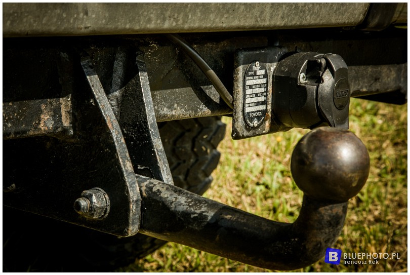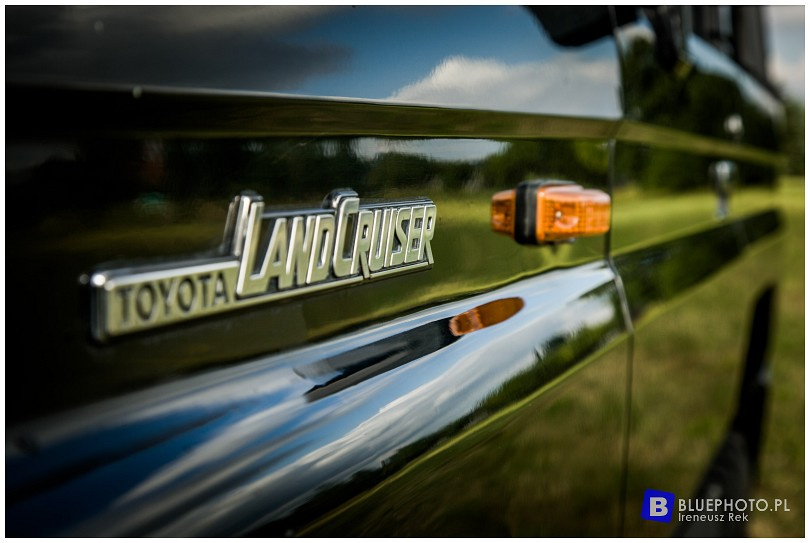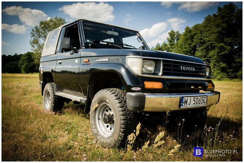 Opisywane auto to model LJ70 z 1992 roku, wyprodukowany już po zmianie wyglądu karoserii i podniesieniu mocy dieslowskiego silnika do 90 KM. Przez pierwszego właściciela używane do rekreacyjnych wycieczek wśród kanałów i wiatraków Holandii. Do Polski sprowadzone przez myśliwego, który zamierzał przysposobić je do przemierzania leśnych ostępów jednak na zamiarach się zakończyło. I może bardzo dobrze, bo dzięki temu, poza zmienionym zawieszeniem na Dobinsons +2 cale i oponami FULDA 4x4 w rozmiarze 31", jest zachowane w idealnym, oryginalnym stanie. Co ciekawe miękki dach pomimo upływu dwudziestu kilku lat jest elegancko i mocno napięty, szczelny i zachowany w całości, łącznie ze wszystkimi suwakami używanymi do odchylania bocznych połaci. Pod maską auto bardzo żwawo rozpędza silnik diesla 2,4l 2L-T II. Do pokonywania terenu służy dołączany ręcznie napęd przednich kół, jednak zaopatrzonych w bardziej komfortowe rozwiązanie czyli automatyczne sprzęgiełka, co oznacza, że aby włączyć napęd 4x4, nie trzeba wysiadać z kabiny auta, jak to się dzieje w przypadku sprzęgiełek manualnych, w które wyposażano większość 70-ek. Podobno jest to rozwiązanie bardzo awaryjne, jednak obecny właściciel nie raportuje tego problemu pomimo, że auto obowiązkowo stawia się na każdym Toyotowym spotkaniu z serii MAZOVIA OUTBACK organizowanym przez klub.