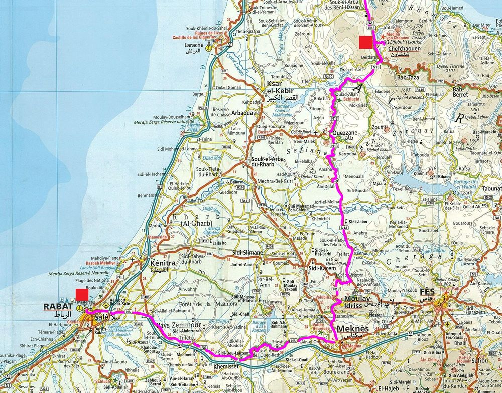Chefchaouen > Meknes > Rabat (śpimy na poboczu ulicy obok ambasady Mauretanii) – 340km