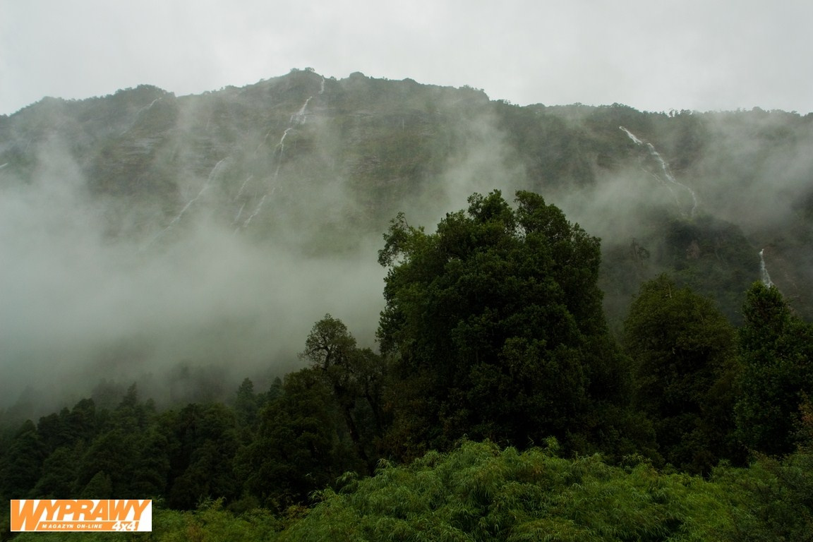 Carretera Austral wiedzie przez doliny wśród zboczy porośniętych prastarym lasem deszczowym, gdzie pobocza zarasta bambus, paprocie i wielki rabarbar. Ten ostatni, nazywany nalca, jedzą tu na surowo z odrobiną soli. Pokryte śniegiem góry i wierzchołki wulkanów, wiszące lodowce, fiordy i rojące się od ryb jeziora lodowcowe tworzą z tego miejsca jeden z najbardziej niezwykłych zakątków planety. Zatrzymujemy się, by przepuścić dwóch huascos pędzących stado krów. Szeroko uśmiechnięty, krępy huasco w obszernym, szarym poncho z niebieskim szalikiem na szyi zatrzymuje konia przy Land Cruiserze. Ma mnóstwo czasu na pogawędkę. Przez chwilę milczy i tylko się nam przygląda, jakby sycił się tym, co widzi. „My tu mamy czas. Cały dzień pasiemy krowy” – mówi wreszcie. – „Życie tu dobre, nie to, co w mieście. Mamy czas i czyste powietrze". To samo mówią wszyscy miejscowi – tu i w Argentynie. Takie słowa sprawiają, że my też zwalniamy i z uśmiechem słuchamy opowieści ludzi zadowolonych z życia i miejsca, w którym przyszło im żyć. Druga strona Carretera Austral Obecność lasów deszczowych świadczy o dużej ilości opadów. Choć mieliśmy kilka dni dobrej pogody, gdy już zacznie padać, wydaje się, że będzie lać bez końca. Jednego z takich dni wjeżdżamy do Puerto Cisnes, rybackiej wioski 32 kilometry na zachód od Carretera Austral. Wąski szlak wiedzie wzdłuż górskich ścian poprzecinanych wodospadami różnej wielkości – od drobnych strumyczków po wielometrowej szerokości masy wody spadające z hukiem do rzek i jezior. Jedziemy w nieustającym deszczu i przy wszystkich nieszczelnościach, których dorobił się nasz Land Cruiser, chyba wkrótce zaczniemy pokrywać się pleśnią. Lejący wciąż deszcz nie robi wrażenia na wędkarzach, którzy w butach po kolana stoją w rzekach i łowią swe ryby. Szczególnie popularne są tu łososie i pstrągi – w Puerto Cisnes próbujemy łososia. Dopiero później dowiadujemy się, że łososie nie są łowione w rzekach, a pochodzą z hodowli i są pełne przeciwdziałających chorobom chemikaliów.