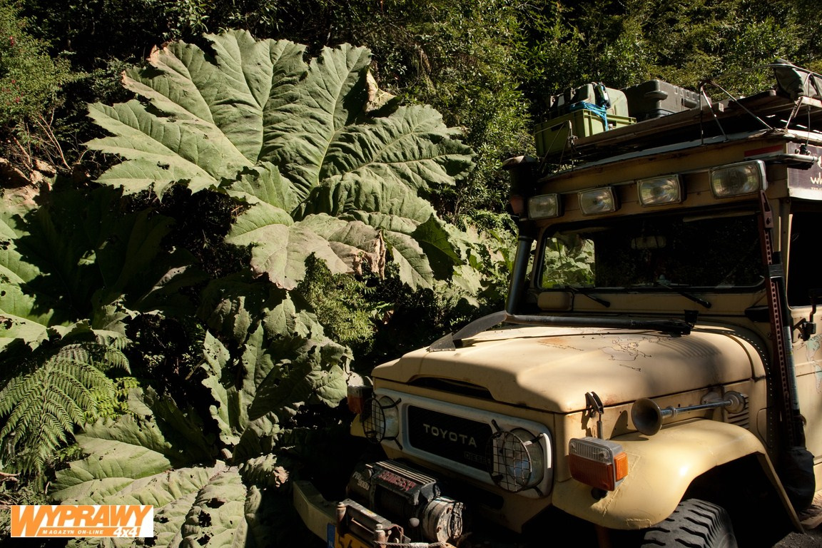 Sterany Land Cruiser Po powrocie na Carretera Austral przestają działać reflektory, milknie klakson, a podczas kolejnego deszczu zaczynają strajkować wycieraczki. Wszystko to razem staje się mocno dokuczliwe, gdy we mgle staramy się pokonać wąski szlak wiodący przez dziewiczą puszczę. A, jeszcze urwał się wydech. Zatrzymujemy się na jednodniowy biwak, podczas którego Coen dokonuje improwizowanych napraw. Przynajmniej znów działają reflektory. Dalej leje jak z cebra i w końcu przechodzi nam ochota na to, by powłóczyć się po okolicy. Dość widoczków, dość romantycznych obozowisk – chcemy jak najszybciej wydostać się z lasów deszczowych, które przestały już być takie idylliczne. Gdy docieramy do Chaitén, wyglądamy jak utopione szczury. Nastrój poprawia się nam natychmiast na widok przyjaciół, którzy wyruszyli na Carretera Austral parę dni przed nami. Jedziemy razem dziesięć kilometrów na północ, na plażę Santa Barbara. Plaża jest przecudna i wiem, że czas, gdy przyjdzie nam ją opuścić, będzie jedną z najtrudniejszych chwil w Patagonii.