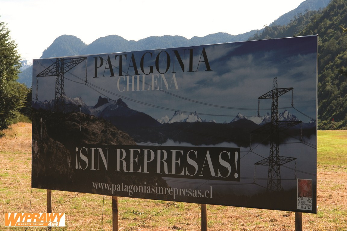 Jedziemy na północ. W latach czterdziestych na tych terenach rozpoczęła się intensywna kolonizacja. Europa potrzebowała wówczas produktów rolnych i rząd Chile postanowił przeznaczyć pod uprawę dodatkowe obszary. W owym czasie drewno nie miało praktycznie żadnej wartości i przez całe lata ziemię rolną pozyskiwano przez wypalanie lasów. Jedziemy całymi kilometrami wzdłuż zerodowanych zboczy gór, z których sterczą poczerniałe kikuty pni – martwi świadkowie tamtego dramatu. Z upływem czasu wartość drewna rosła i międzynarodowe koncerny drzewne nabrały chęci na wykup lasów. Jednocześnie dostrzeżono potencjał tych terenów dla energetyki wodnej. Zwolennicy i przeciwnicy ochrony przyrody wypowiadają się na billboardach. „Mira Como progresa Chile” („Spójrz, jak rozwija się Chile”) – wołają zwolennicy budowy infrastruktury i fabryk. „Patagonia – sin represas” („Patagonia – bez tam”) krzyczą obrońcy przyrody. Kto wygra tę bitwę?