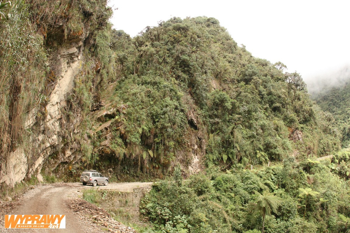 Od Yucumy równina amazońska się nagle kończy i przed nami wyrasta mur Andów. Zaczynamy się wznosić wzdłuż głębokiej doliny pośród coraz wyższych gór otulonych kożuchem gęstej tropikalnej roślinności. Wąska droga, pylista i bardzo kręta, dostarcza niesamowitych widoków i emocji. Każda wieś korzysta z faktu, iż przez nią przejeżdżają dziesiątki pojazdów dziennie i skwapliwie inkasuje myto. Są to dla nas groszowe kwoty, ale dla wsi są zapewne istotną pozycją budżetową. Po wpłaceniu kilku bolivianos trzymany na sznurku szlaban unosi się powoli do góry i można jechać dalej. Docieramy w końcu do Coroico leżącego na 1600 m n.p.m. Od Yucumy wznieśliśmy się zaledwie ponad 1000 m, a ręce bolą od ciągłych zakrętów. W Coroico kończy się (a dla nas jadących od północy się zacznie) słynna El Camino de la Muerte – droga śmierci. Przez długi okres czasu była to jedyna droga wiodąca na północ kraju, więc była dość ruchliwa, a jednocześnie bardzo wąska. Poprowadzona trawersem wzdłuż doliny bez żadnych zabezpieczeń nad ponadkilometrową przepaścią w dół do potoku. W niektórych latach szacuje się, iż ginęło na tej drodze do 200 ludzi rocznie – niewątpliwie najwyższy wskaźnik na świecie, co dało tej drodze złowrogą, lecz zasłużoną nazwę. Na odcinku 35 km droga wznosi się 3 km w pionie – od Coroico 1600 m n.p.m. do górującej nad La Paz przełęczy La Cumbre 4600 m n.p.m.. Stromość jednak nie była największym niebezpieczeństwem, problemem był tu zawsze duży ruch samochodów i częste mijanki na wąskiej nieutwardzonej drodze. Dlatego większość wypadków, jakie miały miejsce na niej, spowodowana była mijaniem się dużych gabarytowo pojazdów na wąskiej półce drogi. Były to często tzw. camiony, czyli ogromne odkryte ciężarówki z ludźmi stojącymi na pace. Mijanie się dwóch camion było naprawdę trudną operacją, zwłaszcza iż grunt na skraju przepaści był często niestabilny i rozmoknięty. W przypadku złego obliczenia skrajni drogi, camiona spadała w przepaść, zabijając wszystkich ludzi na niej stojących. Aby zapobiec rosnącej ilości krzyży przydrożnych wprowadzono więc zasadę ruchu lewostronnego na tej drodze (w całej Boliwii jeździ się prawostronnie), aby osoba mijająca się jadąca z góry (na całym odcinku jadąc w kierunku do Coroico przepaść mamy z lewej strony, skałę z prawej) mogła otworzyć okno i wiedzieć dokładnie, gdzie się kończy droga. Tak też jechałem tą drogą w 1998 roku, kiedy po raz pierwszy byłem w Boliwii. Widok mijających się o centymetry ciężarówek z jednej strony trących paką o skałę, z drugiej kołem jadące po skraju klifu naprawdę mroził krew w żyłach. Prowadziłem wtedy Pajero, więc mijanka nie była dla tak niewielkiego auta problemem. W 2001 roku wprowadzono zasadę drastycznie zmniejszającą ilość wypadków – ruch wahadłowy. Od godziny 6 przez 12 godzin możliwy był ruch tylko w górę, pozostałe 12 godzin doby – tylko w dół. Ostatecznie problem został zażegnany w 2006 roku, gdy otwarto zupełnie nową, szeroką i asfaltową drogę do La Paz wytyczoną nową trasą. Stara droga natomiast stała się atrakcją dla szalonych rowerzystów downhillowców. Jadąc teraz więc znów starą opustoszałą drogą śmierci byliśmy jedynym pojazdem jadącym w górę. Natomiast w dół co jakiś czas mijało nas stadko rozpędzonych często na oślep rowerzystów z trudem panujących nad rowerem, gwałtownie hamujących na nasz widok. Grupę rowerzystów zamyka zwykle furgonetka transportująca rowery i rowerzystów z powrotem do La Paz. Rowerzyści przekonani o tym, że cała droga należy do nich, często zapominają o ostrych zakrętach i ponadkilometrowej przepaści poniżej, wtedy rower wymyka im się spod kontroli. Od czasu, gdy drogę wzięli w posiadanie cykliści, zginęło ich już na niej ponad 30! Droga śmierci nadal zasługuje na swą nazwę, tym razem z innych powodów, inne są też ofiary. Rowerzyści jadą tą drogą dla przyjemności i zaspokojenia swych adrenalinowych potrzeb, Boliwijczycy natomiast ginęli, gdyż nie mieli do wyboru bezpieczniejszej drogi.