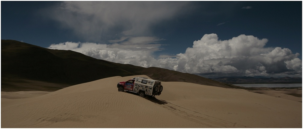 26 tysięcy kilometrów w obie strony. Bagatelka! Ale żeby nie było zbyt łatwo, postanowiliśmy aby w samych Chinach stawić w końcu czoła pustyni Takla Makan w Xinjiangu. To jedna z dwóch największych piaskownic na świecie. Jazdę po piachu ćwiczyliśmy już Hiluxem w Tunezji i w Iranie, ale Takla Makan jest… ciut większa. Mamy z nią zresztą swoje porachunki. Pierwszy raz próbowaliśmy się z nią zmierzyć już kilka lat temu. Wtedy poddaliśmy się jednak po przejechaniu niespełna kilkuset metrów! Drobny piach o temperaturze przekraczającej 50 stopni Celsjusza wydał nam się zbyt wielkim ryzykiem. Za drugim razem, wracając