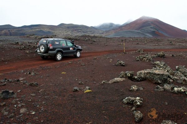 Po przekroczeniu mostu kierujemy się dalej do naszego celu, skręcamy w lewo na zachód w kierunku Kverkfjoll.  Pogoda jest bardzo stabilna i nie pada. Widoczność nie poprawiła się zbytnio. Krajobraz jest księżycowy, marsjański lub tym podobny.